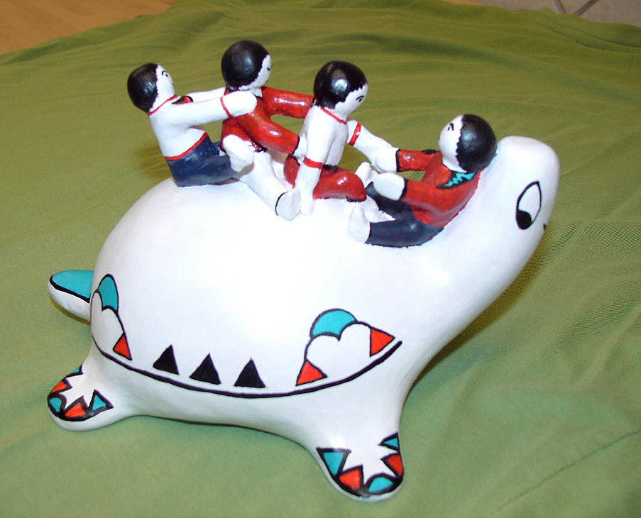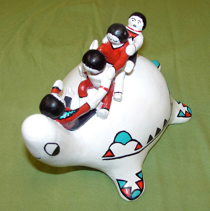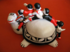 Die getöpferten „Storyteller“ halten mit den Geschichten die Erinnerung wach.